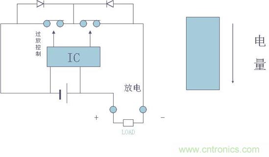 電池在對外部負(fù)載放電過程中,其電壓會隨著放電過程逐漸降低,當(dāng)電池電壓降至2.5V時,其容量已被完全放光,此時如果讓電池繼續(xù)對負(fù)載放電,將造成電池的永久性損壞。