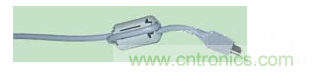 將一個鐵氧體磁環(huán)套在導(dǎo)線或電纜上就構(gòu)成了一介簡單、經(jīng)濟、便于安裝的濾波器,如圖4所示。鐵氧體的作用是將導(dǎo)線周圍的磁場集中起來,從而使導(dǎo)線的電感增加數(shù)百倍。鐵氧體扼流圈的最大好處是它既不需要重新設(shè)計電路,也不需要重新設(shè)計結(jié)構(gòu),因此在設(shè)備的改進中廣泛應(yīng)用。生產(chǎn)廠家提供需多種不同內(nèi)徑規(guī)格的分體式鐵氧體,一般內(nèi)徑從5mm~13mm不等。當(dāng)信號線和回流線同時穿過鐵氧體時,鐵氧體對信號(差