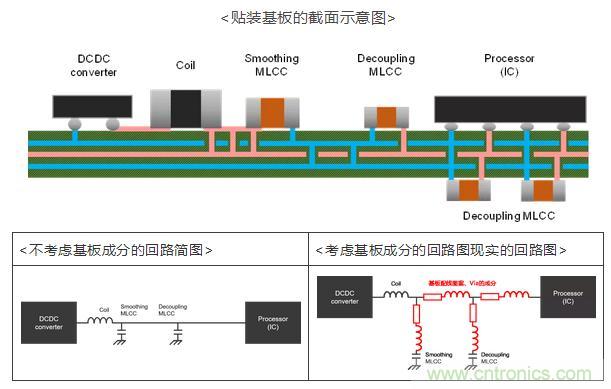 但是,隨著安裝小型化,對基板尺寸和貼裝區(qū)域的限制越發(fā)嚴(yán)格,已很難為了得到期望的阻抗特性而大量貼裝必要的MLCC。