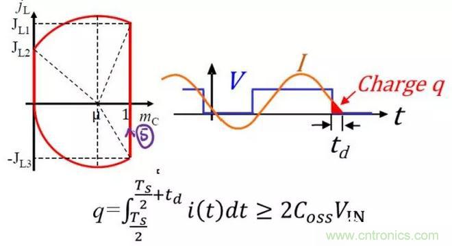 要回答這個(gè)定量問(wèn)題,其實(shí)是不那么簡(jiǎn)單的。對(duì)于PWM converter,參考quasi-square-wave ZVS buck converters,我們是可以畫出state plane,然后根據(jù)state plane圖的幾何關(guān)系定量分析出來(lái)的,但是非常繁瑣,常常是七八個(gè)三角函數(shù)等式求解。所以我個(gè)人愚見(jiàn),在設(shè)計(jì)上,就讓開(kāi)關(guān)頻率小點(diǎn),電感值小點(diǎn),讓電感電流ripple足夠大,能達(dá)到負(fù)值就差不多了。對(duì)于resonant converter,倒是可以簡(jiǎn)單地通過(guò)積分方法,算出i與t的積分,讓這個(gè)it積分大于Coss上的charge就行。比如已知impedance,算出V與I的phase shift,然后換算成時(shí)間td,然后在td上對(duì)電感電流進(jìn)行積分,只要這個(gè)積分大于等于Coss*Vin就行了。