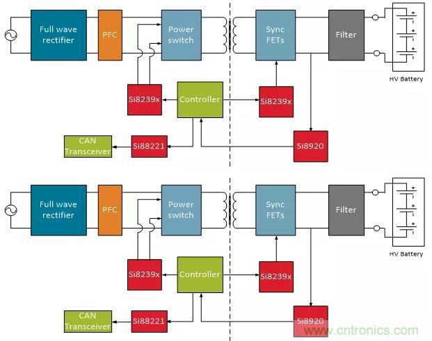 EV之外的其他系統(tǒng),例如充電樁,具有類似的系統(tǒng)要求和隔離需求。