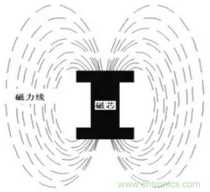 正如上所指,對于一個開環(huán)磁路的電感(以工字電感為例),其磁力線的主磁路是空氣。如圖1。