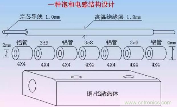 在其他條件相同情況下,相同體積的磁芯的飽和電感緩沖效果大致相當(dāng)。既然如此,磁芯可以按照最有利于散熱的磁路進(jìn)行設(shè)計(jì)。比如細(xì)長的管狀磁芯比環(huán)狀磁芯、多個小磁芯比集中一個大磁芯、穿心電感比多匝電感顯然具有更大的散熱表面積。