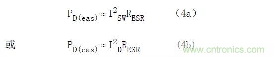 輸入輸出電容是功率開關(guān)或輸出整流器產(chǎn)生的高頻電流的唯一來源(或儲存處),所以通過觀察這些電流波形可以合理地確定流過這些電容ESR的電流。這個電流不可避免地在電容內(nèi)產(chǎn)生熱量。設(shè)計濾波電容的主要任務(wù)就是確保電容內(nèi)部發(fā)熱足夠低,以保證產(chǎn)品的壽命。式(4)給出了電容的ESR所產(chǎn)生的功率損耗的計算式。