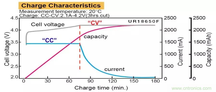 使用類似BQ4725A這類集成的充電管理芯片方案對鋰電池充電其實十分簡單。鋰電池直接連接到充電控制芯片BQ24725A的BAT管腳上,配置充電控制芯片的Charge Voltge,Charge Current,以及保護(hù)功能的Input Current Limit,使能充電功能即可。Charge Voltage(VCHG)是電芯的最大滿充電壓,Charge Current (ICHG) 是電芯允許的最大充電電流。典型的鋰電池充電特性如下圖所示,分為CC(Constant current)和CV(Constant Voltage) 兩個階段。CC階段恒定以最大充電電流持續(xù)對電池進(jìn)行充電,此時單位時間充入電池的電量是恒定的Q=ICHG*T。隨著電池充入電量越來越多,電池電壓會上升,當(dāng)電壓上升到最大滿充電壓時候,充電芯片將控制輸出電壓為恒定的最大滿充電壓,此時電流開始逐漸減小,充入電量的增加速度慢慢減慢,總充入電量仍然在增加。直到電流減小到截止電流點,充電芯片停止充電,鋰電池達(dá)到充滿狀態(tài)。