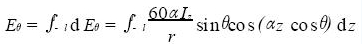 式中Iz 為沿振子臂分布的電流,α為相位常數(shù), r 是振子中點(diǎn)到觀察點(diǎn)的距離,θ為振子軸到r 的夾角,l 為單個(gè)振子臂的長度. 同樣,也可以得到天線的輸入阻抗、輸入回波損耗S11 、阻抗帶寬和天線增益等等特性參數(shù) .
