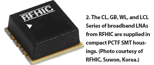 韓國(guó)著名射頻微波模塊廠商RFHIC公司,已經(jīng)開始使用PCTF技術(shù)生產(chǎn)其低噪聲放大器、增益模塊、寬帶低噪聲放大器(包括其CL、GB、WL、LCL系列產(chǎn)品)(圖2)。這些產(chǎn)品體積小(10.16×10.16X 4 mm)、價(jià)格低適于大批量生產(chǎn)。得益于PCTF技術(shù)的散熱特性和可靠性,該公司的寬帶低噪聲放大器產(chǎn)品能提供有益的高增益、低噪聲性能。對(duì)于這些應(yīng)用,PCTF技術(shù)具有承受高溫、散熱性好、易于制造以及可靠性高等優(yōu)點(diǎn)。