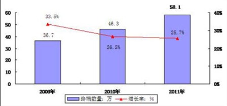 因此,賽迪顧問預(yù)計(jì)2009年,車載視聽系統(tǒng)終端的累計(jì)數(shù)量將超過36.7萬臺(tái),到2011年,中國車載視聽系統(tǒng)終端的累計(jì)數(shù)量將會(huì)達(dá)到54.6萬臺(tái),2009-2011年,中國車載移動(dòng)電視年復(fù)合增長(zhǎng)率為29.1%。