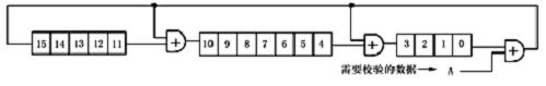 本文采用的CRC-CCITT,能檢測出所有的雙錯、奇數(shù)位錯、突發(fā)長度不大于16的突發(fā)錯以及99.997%的突發(fā)長度為17的突發(fā)錯和99.998%的突發(fā)長度大于或等于18的突發(fā)錯。CRC校驗碼的數(shù)學(xué)原理本文在此不作介紹。本文在這里說明怎樣實現(xiàn)CRC校驗。CRC校驗碼的運算可以用移位寄存器和半加器來實現(xiàn)。如附圖8所示。