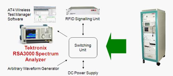 圖6:基于泰克實(shí)時(shí)信號分析儀的RFID認(rèn)證測試系統(tǒng)。