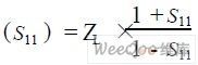 在載波頻率為13. 56 MHz時,通過在TX1 和TX2 兩點測量天線線路的反射系數(shù)(即參數(shù)S11 )來手動調諧,直到天線電路的輸入阻抗達到目標,計算方程如下: