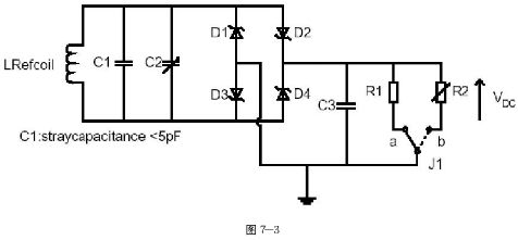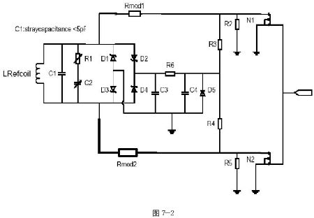 4.Reference device:圖7為兩種測試標準線路和一組天線coil,此referencedevice用于測試DUT的標準件。其中又包含了兩組測試電路,圖7-2為調(diào)變測試電路,圖7-3為電源測試電路。