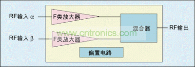 使用異相技術(shù)時,分放大器的選擇至關(guān)重要,F(xiàn)類放大器特別適合工作于此模式。F類放大器不是線性的,但是作為異相放大器系統(tǒng)中的分放大器它工作于固定振幅,其實這一點并不重要。F類放大器在二次諧波和三次諧波采用特殊的終結(jié)方法,使放大器晶體管在“開”時電壓最小,從而減小開關(guān)設(shè)備中的功率損耗。該類放大器的峰值輸出功率與漏電壓平方成正比,因此可用Vdd電源電壓來設(shè)定平均輸出功率,可將Vdd設(shè)定為對于任何平均輸出功率放大器均運行于可能達到的最大效率。