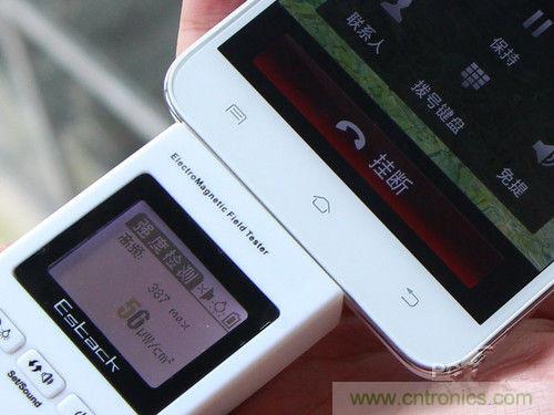 我們也進(jìn)行了相關(guān)的簡單測試,采用Estack ES-305A型電子輻射檢測儀,第一階段將手機(jī)撥號,使其為通話狀態(tài),但尚未接通,此刻來使用輻射測試儀測試手機(jī)周圍輻射,找到平均輻射值最大的地方。第二階段用手機(jī)撥號,接通五秒后,利用輻射測試儀在手機(jī)四周檢測,同樣是找到平均輻射值最大的地方。