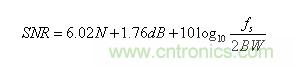 關(guān)于ADC的量化噪聲,貝爾實(shí)驗(yàn)室的W. R. Bennett 1948年發(fā)表的經(jīng)典論文中有一條很有名的公式可以表征: