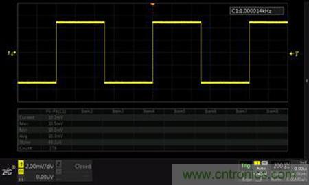 圖1 2mV/div檔位下測(cè)試10mVpp的方波峰峰值誤差