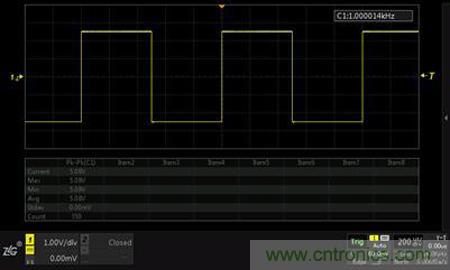 圖 2 1V/div檔位測(cè)試5Vpp方波信號(hào)的峰峰值誤差