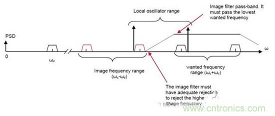 為了討論方便,這里我們規(guī)定本振頻率小于射頻頻率,之所以要抑制鏡像信號,是因為鏡像信號在下變頻會和希望的信號落在同樣的帶寬內。