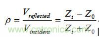 等式假設(shè)信號(hào)在特征阻抗為Z0的傳輸線上傳送遇到了不連續(xù)的阻抗Zt。注意如果Z0=Zt,反射系數(shù)為0,意味著沒有反射。Z0= Zt這種情況就稱為匹配的端接。