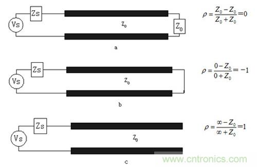 圖4.(a)端接(b)短路(c)開路 三種情況下的反射系數(shù)