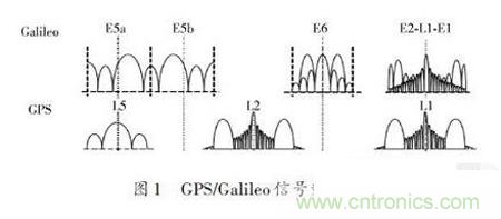 設(shè)計接收機首先要考慮的就是頻帶的選擇。如圖1所示,GPSL1/L5和GalileoE1/E5a中心頻率相同,如果選擇該頻段的話,那么很多的元器件可以得到復(fù)用,從而極大地減少了研發(fā)和生產(chǎn)成本,同時也可以減小接收機的體積。