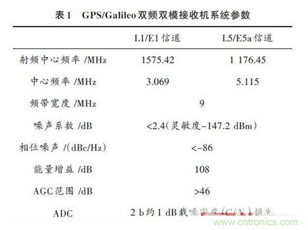 在參考接收機的性能要求的基礎(chǔ)上,設(shè)計GPS接收機射頻前端芯片的各項系統(tǒng)指標(biāo)見表1.