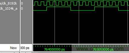 利用FPGA對8192kHz的基準(zhǔn)時(shí)鐘進(jìn)行時(shí)鐘分頻,分別得到1024kHz、512kHz、256kHz和1kHz的時(shí)鐘頻率,需要分別進(jìn)行8分頻、16分頻、32分頻和8192分頻。在利用FPGA進(jìn)行設(shè)計(jì)整數(shù)分頻器時(shí),通過VHDL硬件描述語言利用計(jì)數(shù)器方式來實(shí)現(xiàn)。
