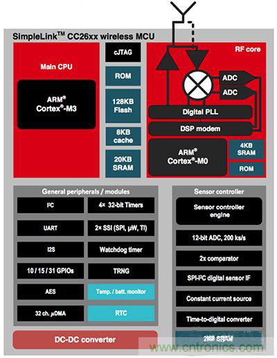 圖 4: TI 的 SimpleLink CC2650 無線 MCU 的功能框圖。