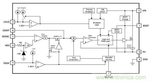 圖 3: TPS92513/HV LED 驅(qū)動(dòng)器的功能框圖。