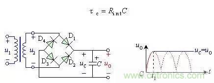 為什么整流后加上濾波電容在不帶負(fù)載時電壓為何升高?這是因為加上濾波測得的電壓是含有脈動成分的峰值電壓,加上負(fù)載后就是平均值,計算:峰值電壓=1.414×理論輸出電壓