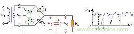 圖5帶載時橋式整流濾波電路