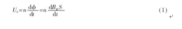 電磁感應(yīng)式傳感器的工作原理是:當(dāng)它貼著鋼管表面掃查時(shí),鋼管缺陷產(chǎn)生的漏磁場(chǎng)會(huì)引起穿過(guò)線圈的磁通量變化,從而使電磁線圈中產(chǎn)生感生電動(dòng)勢(shì),形成缺陷信號(hào)。當(dāng)檢測(cè)用的電磁線圈與鋼管做相對(duì)運(yùn)動(dòng)時(shí),檢測(cè)漏磁場(chǎng)的線圈所產(chǎn)生的感應(yīng)電動(dòng)勢(shì)Uc為: