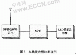 該系統(tǒng)的基本工作原理如下,把輪胎模塊裝置在輪胎內(nèi),壓力和溫度傳感器檢測(cè)輪胎內(nèi)部當(dāng)前的應(yīng)力和溫度信息,獲得的模擬信號(hào)經(jīng)過A/D變換器轉(zhuǎn)換成數(shù)字信號(hào),然后通過射頻發(fā)射器發(fā)送出去。車載接收模塊裝置在駕駛室內(nèi),射頻接收器接收來自輪胎模塊的應(yīng)力和溫度信息,當(dāng)輪胎壓力過高或者過低時(shí),通過顯示和報(bào)警裝置發(fā)出報(bào)警信息。