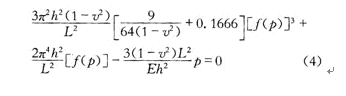 其中坐標(biāo)系是平面直角坐標(biāo)系,其原點(diǎn)是正方形薄膜中心,坐標(biāo)軸平行于薄膜的邊。其中h和L分別是薄膜的厚度和邊長(zhǎng)。f(p)是一個(gè)關(guān)于薄膜絕對(duì)壓強(qiáng)的函數(shù)。f(p)由方程(4)決定,即