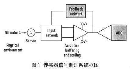 傳感器根據(jù)所測物理量的類型可分類為:測量溫度的熱電偶、電阻溫度檢測器(RTD)、熱敏電阻;測量壓力或力的應(yīng)變片;測量溶液酸堿值的PH電極;用于光電子測量光強(qiáng)的PIN光電二極管等等。傳感器可進(jìn)一步分類為有源或無源。有源傳感器需要一個(gè)外部激勵(lì)源(電壓或電流源),而無源傳感器不用激勵(lì)而產(chǎn)生自己本身的電壓。通常的有源傳感器是RTD、熱敏電阻、應(yīng)變片,而熱電偶和PIN二極管是無源傳感器。為了確定與傳感器接口的放大器所必須具備的性能指標(biāo),設(shè)計(jì)人員必須考慮傳感器如下的主要性能指標(biāo):