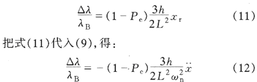 可見光柵的應(yīng)變ε與質(zhì)量塊相對于機(jī)座的位移xr之間成線性關(guān)系.另外,根據(jù)式(1),光纖光柵的布拉格波長變化與位移xr間的關(guān)系為: