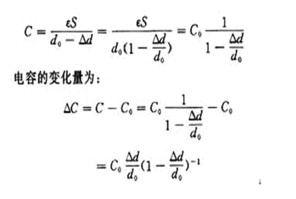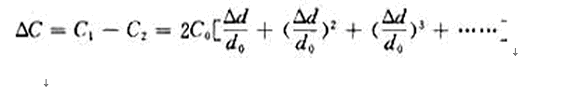 當(dāng)電容器的活動(dòng)極板1移動(dòng)極小時(shí),即Δd<<d0時(shí),上式按泰勒級(jí)數(shù)展開為:
