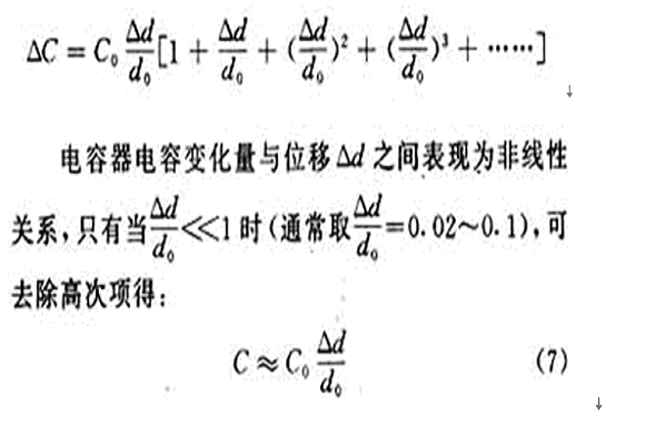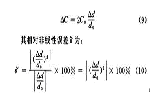這時(shí)電容器的變化量ΔC才近似地和位移Δd成正比。其相對(duì)非線性誤差為: