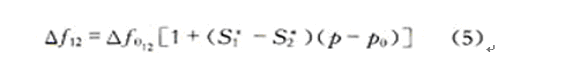 當傳感器表面有壓力作用時,無線SAW壓力傳感器的壓電薄膜就會產(chǎn)生形變,薄膜材料的應變會使得聲表面波傳播速度發(fā)生變化,從而使聲表面波的中心諧振頻率發(fā)生變化。通過無線檢測SAW壓力傳感器的中心諧振頻率變化,就能得到壓力變化的數(shù)據(jù)。假設(shè)溫度對兩個單端諧振器的中心諧振頻率影響很小,則兩諧振器中心頻率差的變化與所測壓力之間的關(guān)系式可表示為