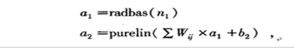 鑒于BP神經(jīng)網(wǎng)絡(luò)訓(xùn)練過程需要對所有權(quán)值和閥值進(jìn)行修正,是一種全局逼近神經(jīng)網(wǎng)絡(luò),但訓(xùn)練速度較慢,不適用實時性較強場合,故采取了局部逼近網(wǎng)絡(luò)——徑向基網(wǎng)絡(luò)。算法訓(xùn)練關(guān)系式如下: