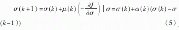 其中,μ(k)為學(xué)習(xí)率,α(k)為動量因子,也稱為遺忘因子,又稱動量項或阻尼項。將其稱為遺忘因子可從對于新舊信息的學(xué)習(xí)與遺忘的角度來理解;稱為動量項或阻尼項是因為在網(wǎng)絡(luò)的學(xué)習(xí)訓(xùn)練中,此項相當(dāng)于阻尼力,當(dāng)訓(xùn)練誤差迅速增大時,它使網(wǎng)絡(luò)發(fā)散得越來越慢??傊咕W(wǎng)絡(luò)的變化趨于穩(wěn)定,有利于網(wǎng)絡(luò)的收斂。