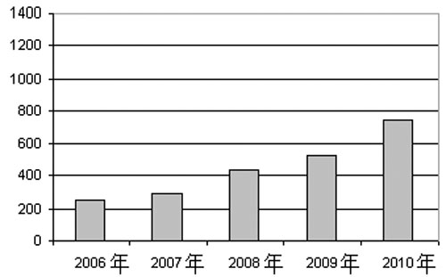 2006-2010年MEMS手機(jī)市場(chǎng)規(guī)模 單位:百萬美元
