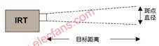 視場物體的熱輻射“體現(xiàn)”出了其表面的溫度,這一點(diǎn)與無線電信標(biāo)非常相似。不同之處在于在IRT測量中,熱輻射來自于物體表面上的一個(gè)已知大小的斑點(diǎn)。您需要捕獲所有輻射,而不能讓任何輻射在沿途上被阻隔。在一段特定距離上的斑點(diǎn)直徑(也就是一段給定距離上的“視錐”的橫截面面積)由器件的光學(xué)特性來決定。一般來說,距傳感器越遠(yuǎn),斑點(diǎn)的直徑就越大。斑點(diǎn)尺寸常常用一個(gè)比值來表示,比如50:1或10:1。這意味著最小的目標(biāo)斑點(diǎn)直徑為傳感器至感興趣物體間距離的1/50或1/10(圖1)。