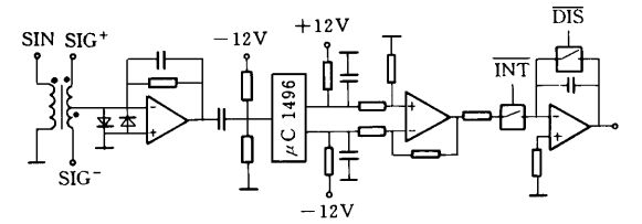 在沒有觸摸的情況下,由于元器件的誤差等原因,變壓器次級中心抽頭上的電流不一定為零,從而引起測量誤差,為此本控制器設(shè)置了自動(dòng)調(diào)零電路,如圖5 所示。該電路將12 位D/ A 轉(zhuǎn)換器DAC1230 的輸出,通過電容耦合到SIG-信號上,使得變壓器次級中心抽頭上的電流調(diào)整為零。