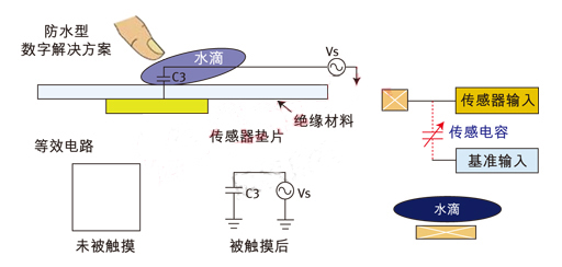 圖3:數(shù)字觸摸方案;在存在水滴時(shí)仍具有魯棒的性能。