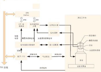 為保證汽車爆震傳感器測(cè)試系統(tǒng)的可靠性、高效性和可擴(kuò)展性,在硬件組成上采用PXI系統(tǒng)實(shí)現(xiàn)對(duì)整個(gè)系統(tǒng)的控制,硬件資源與系統(tǒng)構(gòu)成如圖2所示,主要包括PXI控制器、PXI數(shù)字I/O板卡、振臺(tái)、LCR表、高阻表、信號(hào)鎖相放大器、信號(hào)通道切換模塊和氣動(dòng)夾具系統(tǒng)等。