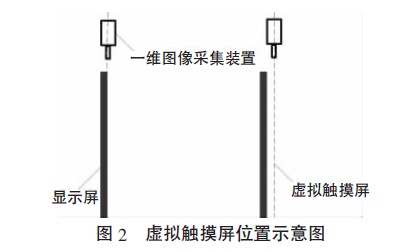 設(shè)計了一種虛擬觸摸屏系統(tǒng),其特色在于由圖像采集裝置獲取的一維圖像數(shù)據(jù)來確立用戶手指觸摸二維虛擬觸摸屏上的位置坐標(biāo)。前提是一維圖像采集裝置的安裝位置,它從根本上解決了大屏幕觸摸屏中人體遮擋手指無法識別的問題,且其進行的是一維數(shù)據(jù)的處理,相比于二維圖像處理算法更加簡單。