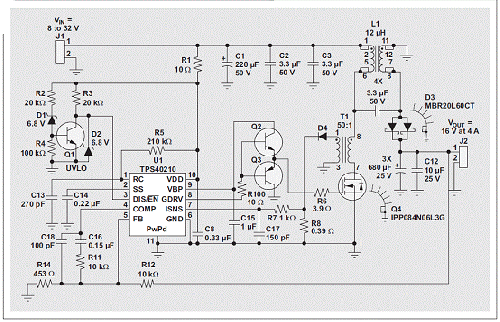 圖 2 使用耦合電感的 SEPIC(4A 時(shí) 16V)