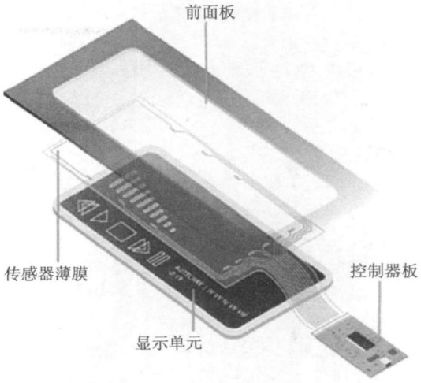 如圖5 所示,一個觸摸屏系統(tǒng)包括:前面板、傳感器薄膜、顯示單元、控制器板和系統(tǒng)軟件。