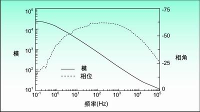 盡管奈奎斯曲線很常用,但是它不能給出頻率信息,所以對于任何特定阻抗,都不可能知道采用的頻率值是多少。因此,奈奎斯曲線通常要采用其它曲線來補(bǔ)充。另外一種常用的表示方法就是波特(Bode)圖。在波特圖中,x軸表示頻率的對數(shù),阻抗的幅度絕對值|Z|和相移都用y軸表示。因此波特圖同時表示了阻抗與頻率和相移與頻率的關(guān)系。通常將奈奎斯曲線和波特圖一起使用來分析傳感器元件的傳遞函數(shù)。